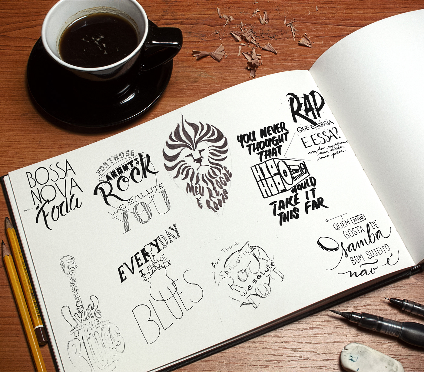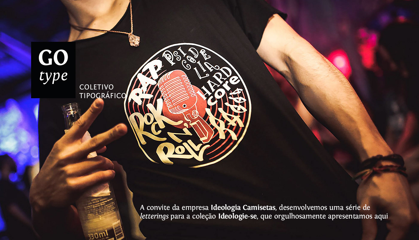 Desenvolvimento de letterings e ilustrações por GOtype e Tipô Tipografia para Coleção Ideologie-se da marca Ideologia Camisetas.